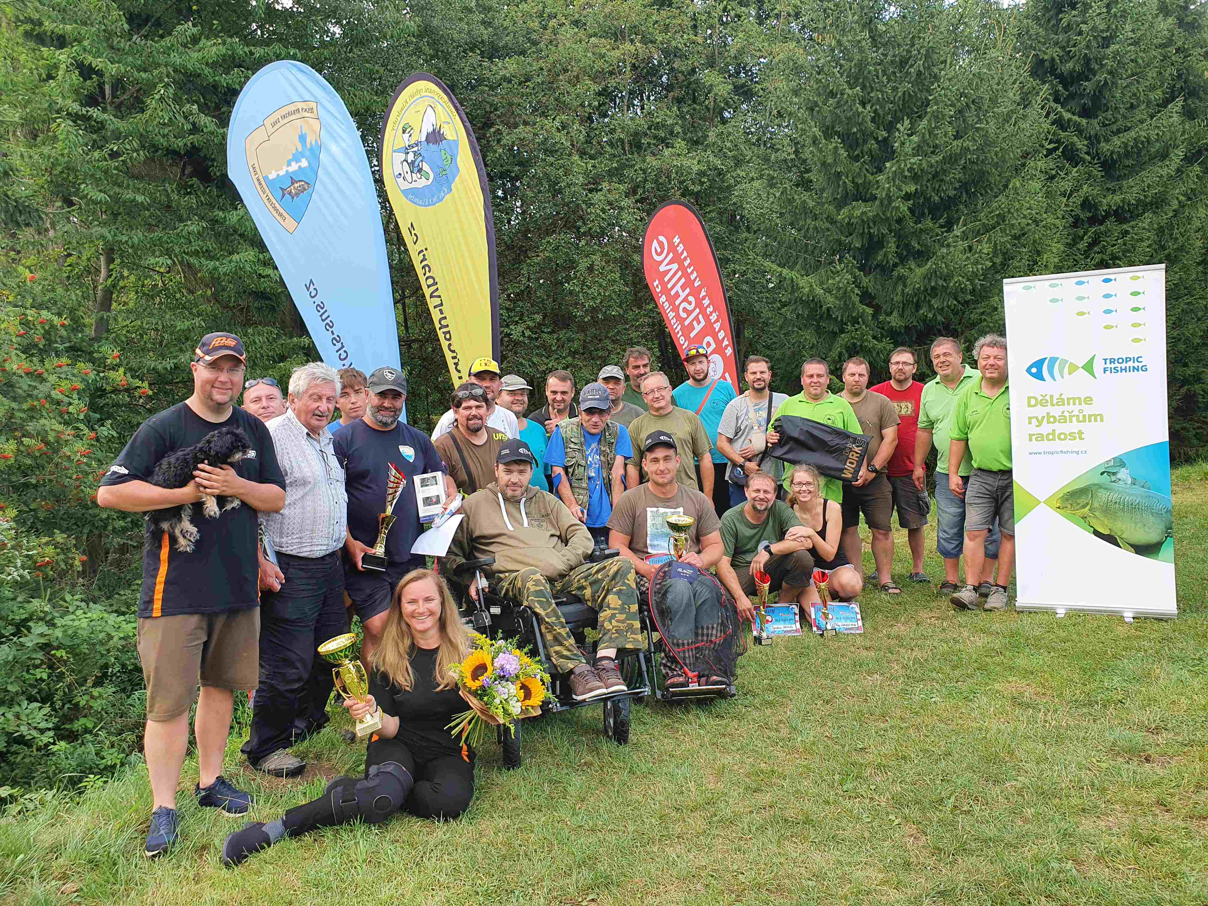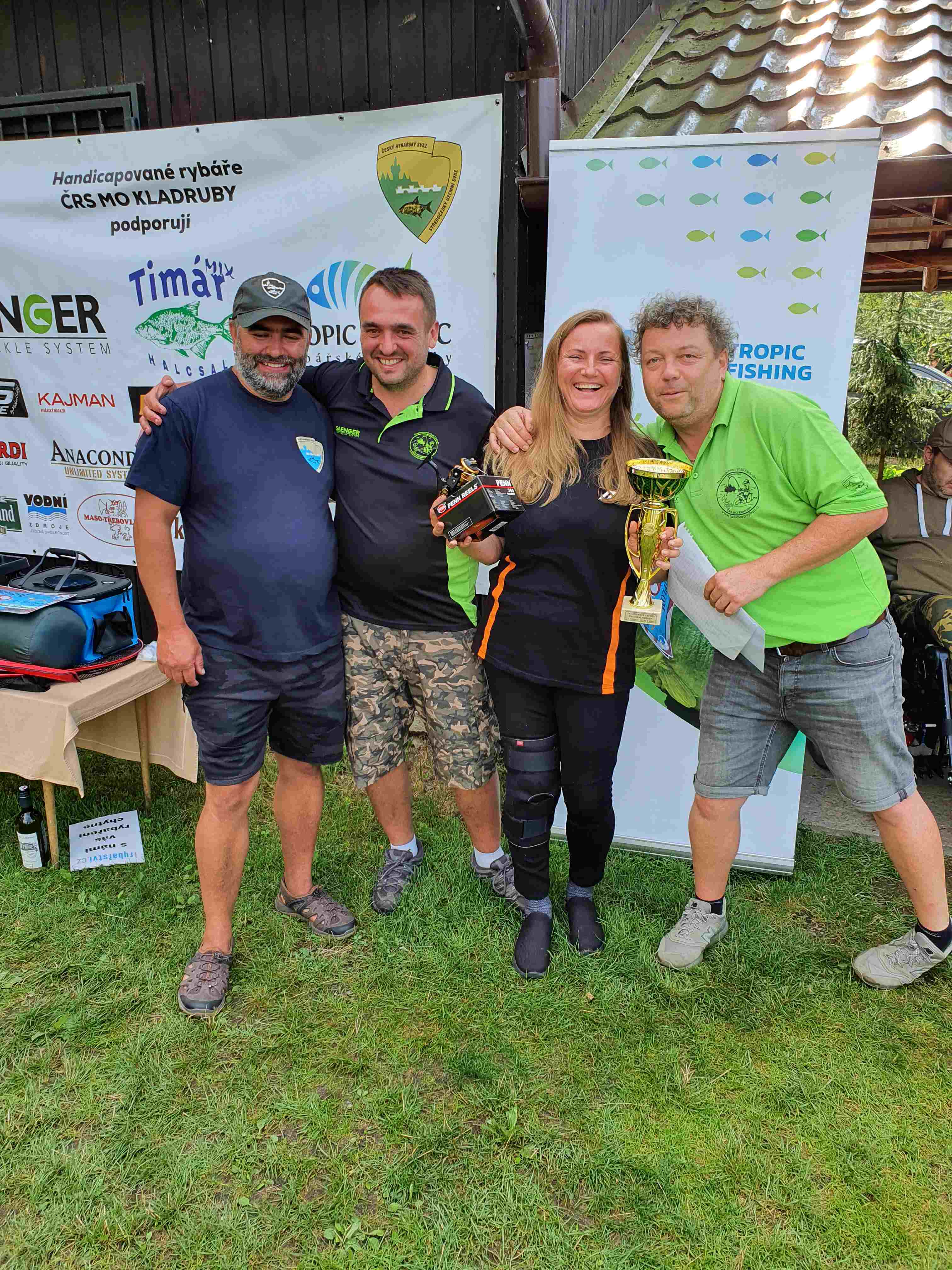 Kategorii bez handicapu a celkovým vítězem 24hodinovky se stal předseda SÚS Dušan Hýbner, který svým výkonem dominoval nad celým startovním polem. Dušan nachytal přes dvacet čtyři metrů ryby v počtu 94 chycených (kaprů kolem padesáti). Jeho účast, pokora a slova chvály a povzbuzení do další činnosti členů handicapovaných rybářů ČRS MO Kladruby byla pro všechny velkou motivací do dalších let. Druhé místo získal náš další velký kamarád Jaroslav Havel s 39 úlovky a celkovou délkou 1287 cm, který s celou svou rodinou naši organizaci bezmezně podporuje. Bronz získala výše zmiňované Gábina Tauberová. Na čtvrtém a pátém místě se kamarádi Marek Odložilík a soutický Pavel Mikeš. Po společné fotografii, kterou jsme pro Vás připravili, se většina osazenstva uchýlila ke svým domovům, na organizátorech zůstala povinnost zlikvidovat veškeré zásoby jídla a pití, poklidit závodní úsek a připravit revír pro každodenní rybolov členů ČRS MO Kladruby.